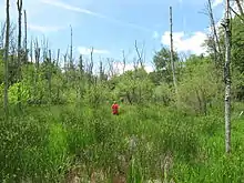 В этих болотах можно встретить мох, рогоз, ольху, иву и некоторые другие кустарники и деревья. Важным условие для обитания черепах является открытость местности, потому что черепахи большую часть времени проводят, греясь на солнце. Для созревания яиц также необходим солнечное тепло и влажность[21].
