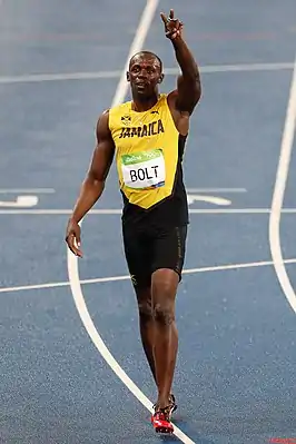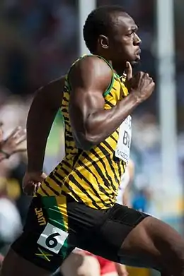 Усэ́йн Сент-Лео Болт[5][6] (англ. Usain St. Leo Bolt; род. 21 августа 1986 года, Шервуд-Контент, приход Трелони, Ямайка) — ямайский легкоатлет, специализировался в беге на короткие дистанции, восьмикратный[7] олимпийский чемпион и 11-кратный чемпион мира (рекорд в истории этих соревнований среди мужчин). За время выступлений установил восемь мировых рекордов. На текущий момент — обладатель мировых рекордов в беге на 100 — 9,58 с; и 200 метров — 19,19 с, а также в эстафете 4×100 метров в составе сборной Ямайки — 36,84 с.