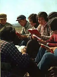 Система образования Китая практически остановилась во время Культурной революции. В первые месяцы Культурной революции школы и университеты были закрыты. Позднее начальные и средние школы открылись снова, но все колледжи и университеты были закрыты до 1970 года, а большинство университетов открылось только в 1972 году[85]. Вступительные экзамены в университеты были отменены после 1966 года, а позже их заменила система, при которой студентов рекомендовали фабрики, деревни и воинские части[86]. Были заброшены ценности, которым учат в традиционном образовании. В 1968 году Коммунистическая партия начала кампанию «Ввысь в горы, вниз в сёла», в рамках которой «образованную молодёжь» из городских районов (кит. 知識青年) отправляли жить и работать в сельские районы, чтобы крестьяне перевоспитали их и они лучше поняли роль крестьянского труда в китайском обществе.