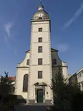 Напротив дома Гейне находится протестантская церковь Неандеркирхе построенная в 1684 году и названная по имени немецкого теолога и сочинителя церковных гимнов Иоахима Неандера. Неандеркирхе — одно из немногих зданий, которое пережило вторую мировую войну практически без повреждений. Раньше Неандеркирхе закрывалось стоящими впереди зданиями, но в ходе войны эти здания были разрушены и более не восстанавливались[6].