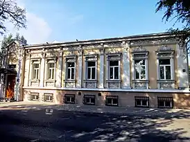 Один из двух домов располагался в глубине двора, другой находился на красной линии улицы. Сейчас в этом здании работает отделение физиотерапии. Металлическая кованая ограда служила соединением между двумя домами. Строители домовладения прибегли к смешению элементов разных стилей — здесь встречаются детали модерна, классицизма, ренессанса и барокко. Предполагается, что полутораэтажный дом был построен раньше трехэтажного дома. Его фасад обладает трехчастной симметрической композицией с выделенным ризалитом. На боковых крыльях содержатся рельефные композиции, которые изображают женщин с ребенком на руках. У пилястровых наличников есть арочное завершение в виде портиков. Орнамент и изящные раковины служат украшением карниза. Портал входа в дом при строительстве был приподнят на высокий цоколь. Раньше во дворе дома располагались фонтаны[2].