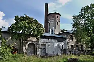 Котельная-электростанция с водонапорной башней, двускатной крышей и неоштукатуренным фасадом построена из плитняка и кирпича. В северной части здания расположен машинный зал, в южной размещаются ёмкости разного размера. Из ценных деталей сохранились навес над входной дверью и оформление винтовой лестницы водонапорной башни. В ходе перестроек к зданию была добавлена мастерская и гаражи (в настоящее время частично разрушены)[8].