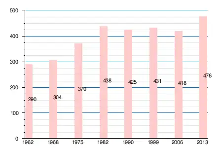 | 1962 | 1968 | 1975 | 1982 | 1990 | 1999 | 2006 | 2008 | 2011 | 2012 | 2013 |