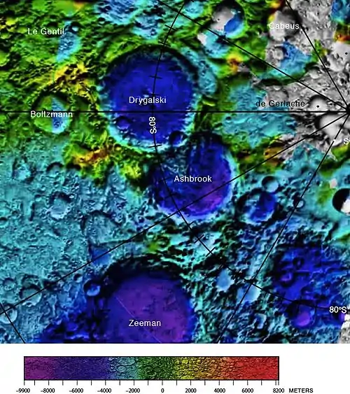 - Карта окрестностей южного полюса Луны.