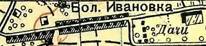 БОЛЬШАЯ ИВАНОВКА — деревня владельческая при колодце, число дворов — 4, число жителей: 12 м п., 13 ж. п. (1862 год)[7]