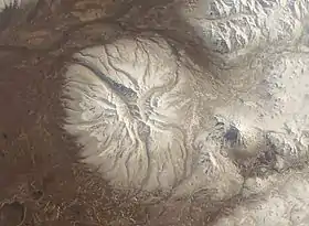 Высота — 1139 м. Диаметр основания — 35 км. Вулкан представляет собой горный массив — он разделён на много гор, которые образовались от мощного последнего извержения, произошедшего в раннем плейстоцене. Вулкан сложен базальтами, его площадь составляет 1100 кв. км, а объём — от 330 до 550 куб. км.[1]