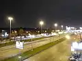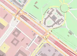 В этом месте Ленинградский проспект имеет наибольшее количество полос: в центр (9) — 5 полос основного хода + 4 полосы на дублёре; в область (10) — 3 полосы основного хода в область + 3 транзитных полосы дублёра в тоннеле + 4 полосы дублёра на поверхности)