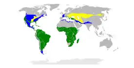 ![]() Гнездовой ареал Круглогодично Только зимой |