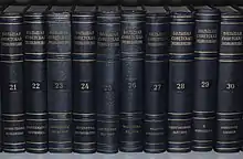 - второе издание (1949—1958) насчитывало 49 томов, том 50 «СССР», дополнительный том 51 и том без номера «Алфавитный указатель» в двух книгах (1960);
