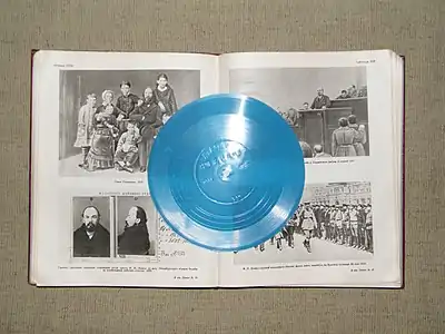 Сторона 1 (ГД-0003831) № Название Длительность 1. «Что такое Советская власть?» (конец марта 1919) 2:35 Сторона 2 (ГД-0003832) № Название Длительность 2. «Как навсегда спасти трудящихся от гнёта помещиков и капиталистов» (конец марта 1919) 2:16 3. «О трудовой дисциплине» (конец марта 1920) 2:00 - The Great Soviet Encyclopedia: A Translation of the Third Edition of the Bol'shaya Sovetskaya Entsiklopediya. — New York, London: Macmillan, Collier-Macmillan, 1973—1982. — Т. 1—31, index.