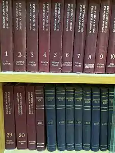 - Μεγάλη Σοβιετική Εγκυκλοπαίδεια. — Αθήνα: Ακάδημος, 1978—1989. — Т. I—XXXIV, συμπληρωματικός τόμος Α.