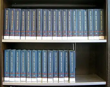 - третье издание (1969—1978) насчитывало 30 томов (том 24 издан в двух книгах: вторая, дополнительная книга — «СССР») и дополнительный том «Алфавитный именной указатель» без номера (1981).
