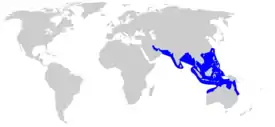 Большеголовая молот-рыба обитает на мелководье континентального и островного шельфа индо-западной части Тихого океана, от Персидского залива до Филиппин, от Китая и Тайваня на севере до штата Квинсленд и Северной территории Австралии на юге[4]. Иногда она входит в солоноватые устья рек[6].