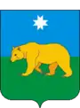 Описание герба: «В пересеченном лазурью и зеленью поле золотой идущий медведь сопровождаемый во главе серебряным прямым вырубным крестом».