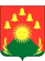 Описание герба: «В червленом поле с вписанным зелёным острием сияющее солнце, сопровождаемое вверху, сообразно острию, пятью колокольчиками; внизу, справа и слева — колосьями хлеба; все фигуры золотые»[6].