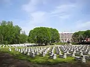 На другой стороне кладбища, за проспектом Энергетиков, находится братская могила советских воинов и жителей Ленинграда, погибших в годы Великой Отечественной войны 1941—1945 гг. По данным ОБД "Мемориал", в братской могиле захоронено 213 человек.[10]
