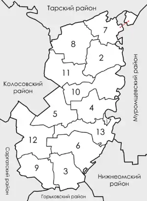 - Решением облисполкома от 9 июня 1954 года «Об изменении административных границ Тарского, Тюкалинского, Большереченского и Колосовского районов»