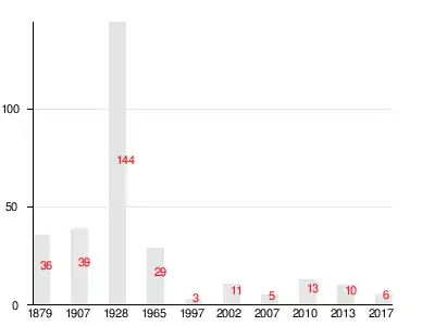 Число жителей по семейным спискам 1879 г.: 14 м. п., 22 ж. п.; по приходским сведениям 1879 г.: 16 м. п., 24 ж. п.[4]