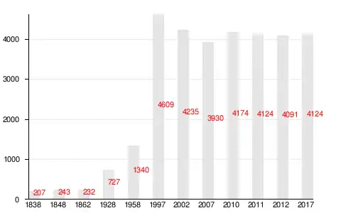 | 1838 | 1848 | 1862 | 1928 | 1958 | 1997 | 2002[29] |