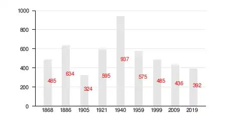 На 1 января 2018 года насчитывалось 380 жителей в 180 домохозяйствах, из них 45 младше трудоспособного возраста, 222 — в трудоспособном возрасте и 113 — старше трудоспособного возраста[6].