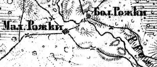 Смежные деревни Большие Рожки и Малые Рожки отмечены на карте профессора С. С. Куторги 1852 года[4].