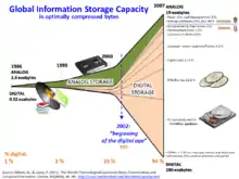 — 2002 год явился переломным в изменении соотношения мирового объёма аналоговых и цифровых данных в пользу последних, объём которых увеличивался в геометрической прогрессии (лавинообразно);
