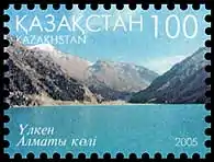Большое Алматинское озеро на марке Казахстана, 2005 год