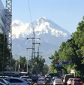 ![]() Вид на Большой Алматинский пик с улиц города | |