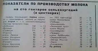- Во второй половине XX века колхоз по ряду показателей стабильно занимал передовые и средние позиции.