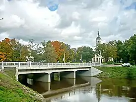 Деревянный мост на этом месте отмечен на картах с 1720-х годов[7]. В 1912 году на месте деревянного моста по проекту архитектора Г. А. Гиршсона товариществом «Железо-бетон» построен трёхпролётный железобетонный мост[8][9]. Длина моста составляла 36,5 м, ширина — 9 м, в том числе 2 тротуара по 1,2 м.