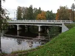 Выше по течению находится Охтинская плотина, ниже — Армашевский мост.