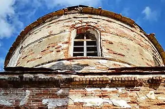 В архитектурном плане строение представляло собой кирпичную однопрестольную однокупольную церковь с двухъярусной колокольней в стиле позднего классицизма, близкую к образцовым проектам.