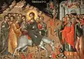 По другой версии, настенные фрески нового Собора Великого Метеора выполнил не менее известный критский художник Джордже[7], ученик Феофана Стрелитзаса, создавший иконопись Собора монастыря Дионисия на Святом Афоне (1547 г.).