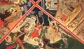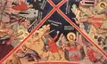 Живописное убранство Собора также выполнялось в три этапа, правда, с большими перерывами друг от друга. В первый этап создана роспись храма (это было примерно в 1388 году). Единственной сценой, сохранившейся с тех времен, является Второе Пришествие на внешней стороне северной стены старого собора. Основу композиции составляет Христос Пантократор под сводами, окруженный двумя ангелами. Слева и справа под сводом Богоматерь и Иоанн Предтеча, умоляющие Христа о спасении человечества. В центре — фигуры апостолов, сидящих на прямоугольной скамье. На двух нижних поясах композиции изображен Рай и Ад с праведниками и грешниками соответственно. В дверях, которые были построены в 16 веке, изображены прародители.
