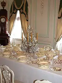 Белая столовая замыкает анфиладу больших парадных залов дворца. Её местоположение в планировке проводит границу между официальными залами и приватными дворцовыми покоями.