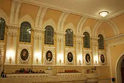 В 1953 портреты Мендельсона, Глюка, Гайдна и Генделя были заменены на изображения Римского-Корсакова, Шопена, Даргомыжского и Мусоргского, соответственно, выполненные советскими художниками[3]. Снятые портреты Мендельсона и Гайдна были спустя много лет обнаружены, отреставрированы и сейчас выставлены перед входом в партер. Портреты Глюка и Генделя утрачены[4].