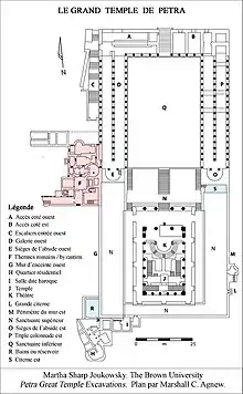 Большой храм занимал центральное место в древней Петре: с его руин открывается вид Сик на юго-востоке, храм Каср эль-Бинт на западе и нижний рынок и бассейн Петры на востоке. Неясно, был ли комплекс религиозным или административным зданием, и, если он действительно был религиозным, как именно он функционировал или какому божеству он был посвящён.