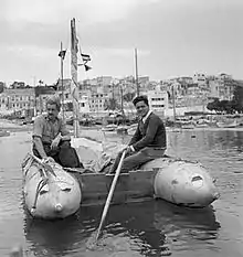 Ален Бомбар — первый человек в мире, пересёкший под парусом Атлантический океан на надувной резиновой лодке, сконструированной по образцу спасательных плавсредств своего времени, снабжённой лишь стандартным набором для потерпевших кораблекрушение[5] и неприкосновенным запасом продуктов, сохранность которого была официально засвидетельствована по окончании эксперимента.