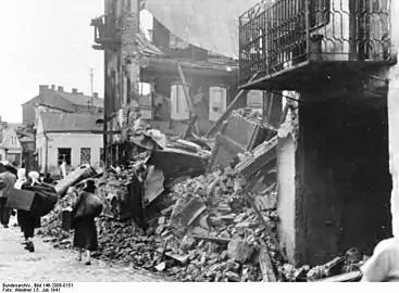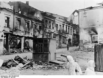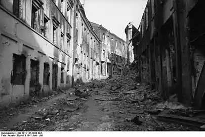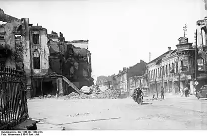 ![]() Минск после бомбардировок в июне 1941 года. | |||