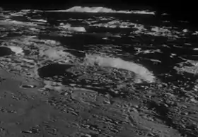 ![]() Снимок с борта Аполлона-11. Кратер Бомон на переднем плане, на заднем плане уступ Алтай. | |