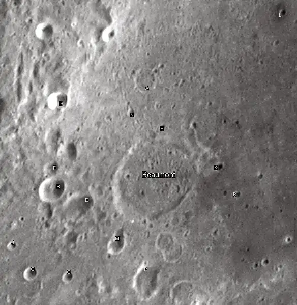 - На севере от сателлитного кратера Бомон P находится концентрический кратер.