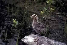 Птенцы-пуховички чёрные с коричневыми пятнами.