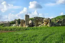 Мегалитический храм относится к периоду около 2000—1600 гг. до н. э. Он сильно разрушен, что делает его датировку довольно ненадёжной, поскольку место храма подверглось расчистке в конце XIX века с тем, чтобы превратить эту землю в культивируемые поля. В настоящее время хорошо виден фундамент храма в виде трилистника (28 x 16 м), характерный для мегалитических храмов, несмотря на наносные камни более позднего происхождения[1].