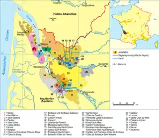 Вся территория Бордо делится на классифицированные апелласьоны, то есть микрозоны с уникальным сочетанием климатических, почвенных, технологических и других особых условий. Всего в рамках региона выделяется 57 различных апелласьонов — региональных, субрегиональных и коммунальных, которые, в свою очередь, объединены в шесть групп по типам: