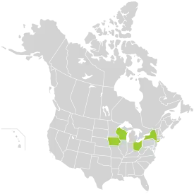 Растение распространено в нескольких северо-восточных штатах США: в Айове, Висконсине, Нью-Йорке и Огайо. Произрастает в лесах на северных или восточных склонах известняковых и песчаниковых скал, в затенённых и хорошо увлажнённых местах. Вид внесён в список находящимися под угрозой исчезновения и исчезающих животных и растений США в 1978 году.