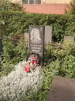 В 1957 году полковник Владимир Александрович Борисенко вышел в отставку, после чего жил и работал в Ленинграде, где и умер 14 апреля 1993 года. Похоронен на Волковском православном кладбище Санкт-Петербурга.