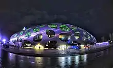 20 июля 2013 началась обшивка фасада арены оригинальной чешуей.