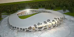 Проектирование стадиона было поручено словенской фирме «Ofis arhitekti». За образец был взят стадион «Людски врт» в Мариборе. Работы над уникальным проектом стадиона были завершены летом 2010 года. Он представляет собой чисто футбольный стадион, рассчитанный на 12 548 зрителей (позже число мест возросло до 13 121), соответствующий требованиям четвертой категории УЕФА, позволяющий проводить не только поединки квалификационных стадий еврокубков, но и встречи группового этапа и плей-офф Лиги чемпионов и Лиги Европы. Также, помимо основного строительства, предусмотрено порядка 3000 м² коммерческих площадей (они составляют 2-ю очередь строительства).