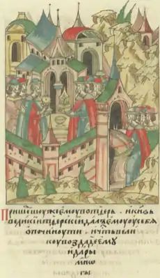 ![]() Приезд Василия II Тёмного в Тверь, Борис встречает и щедро одаривает московского князя | |