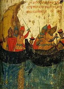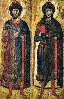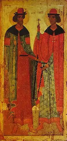 Борис и Глеб (в крещении Роман и Давид; убиты в 1015 году) — русские князья, сыновья киевского великого князя Владимира Святославича. В междоусобной борьбе, вспыхнувшей в 1015 году после смерти их отца, были, по официальной версии, убиты своим старшим братом Святополком, который позднее получил от историографов прозвище «Окаянный». Борис и Глеб стали первыми русскими святыми, их канонизировали в лике мучеников-страстотерпцев, сделав их покровителями Русской земли и «небесными помощниками» русских князей.
